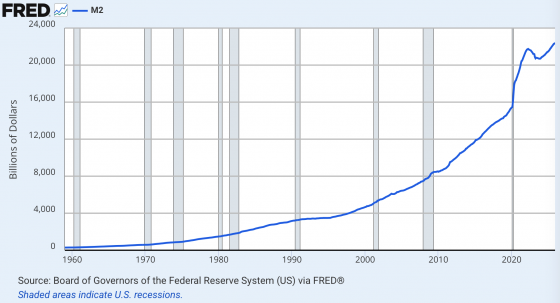 For a very long time, the people running the system have been doing a really bad job. Our money supply has been growing at an exponential rate, and things really got crazy once the pandemic hit. The following chart that comes directly from the Federal Reserve shows the growth of M2 since 1960…